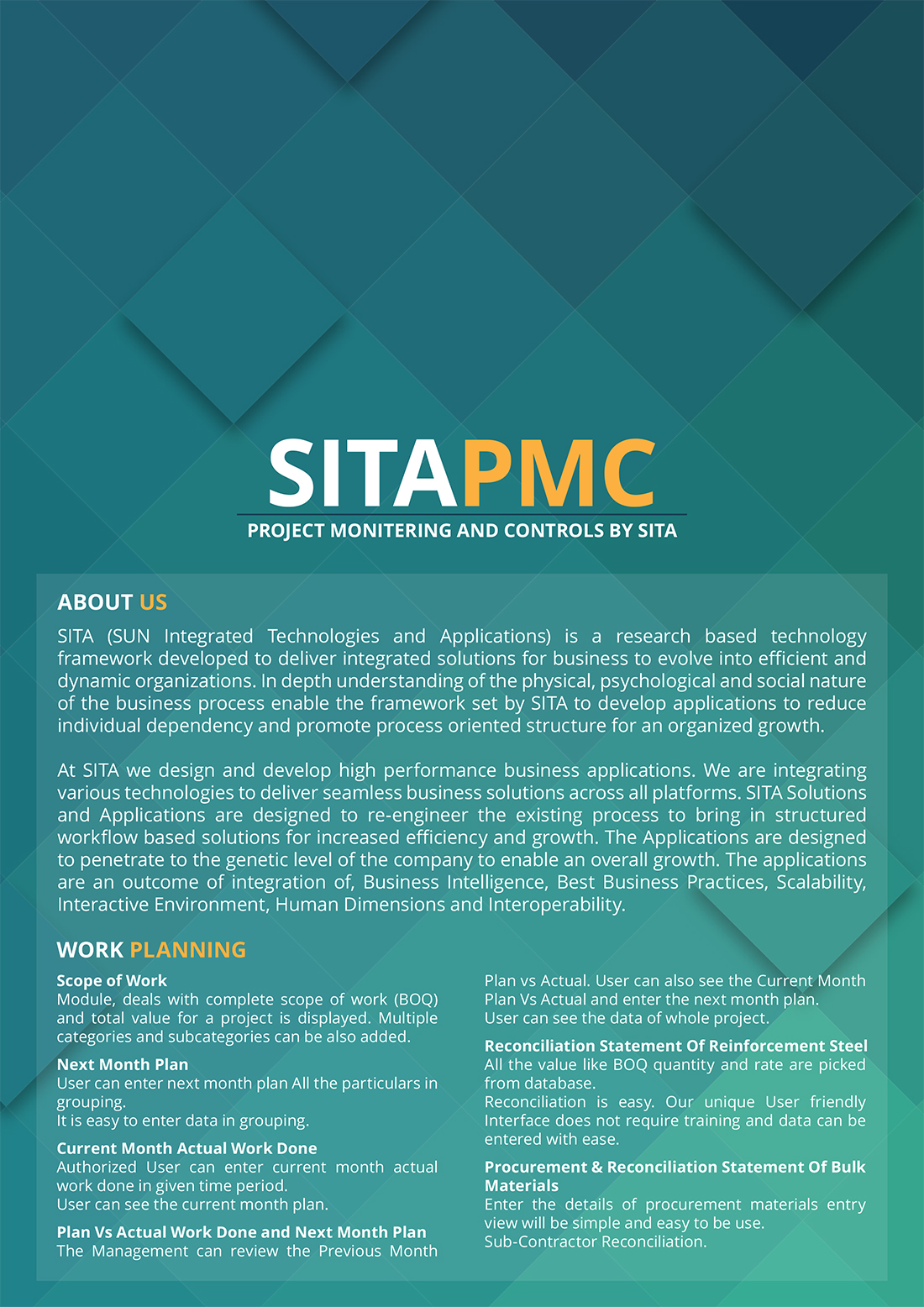 " PROJECT MONITERING AND CONTROL BY SITA. "